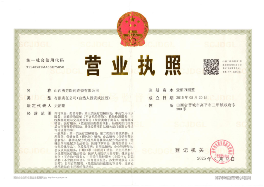 山西省高平市三甲镇政府东300米山西勇芳医药连锁公司